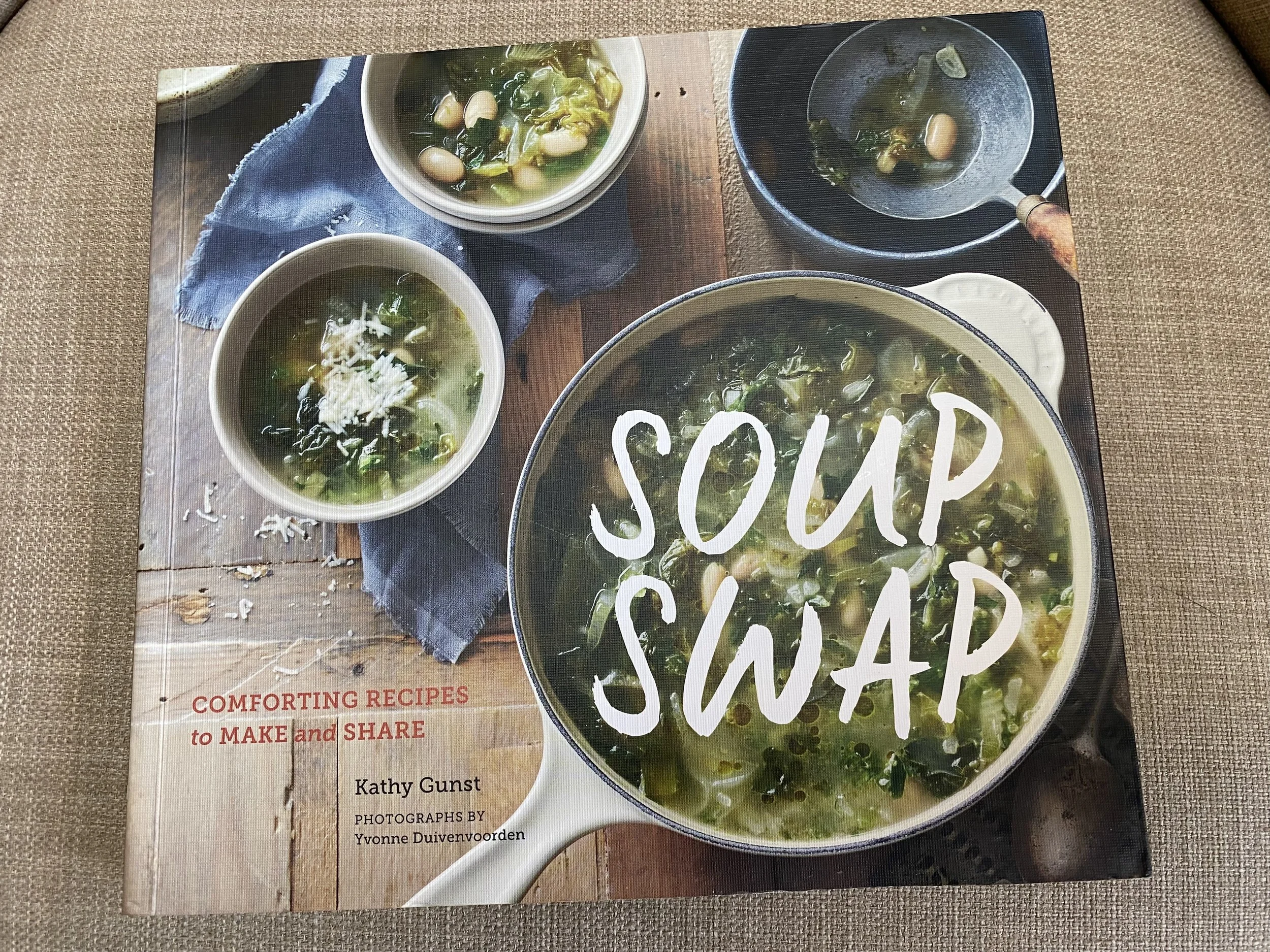 The next morning I made beef, barley and portobello mushroom soup; one third went into my freezer, one third to Sandy J. who had a bad cold, one third to Anne S. who’s homebound with a broken clavicle. The rest of that week, I immersed in soup recipe books, corner-turning pages detailing Parsnip and Pears, Potage of Lentils with Confit Lemon Rinds, and Chick Pea and Pasta soups.