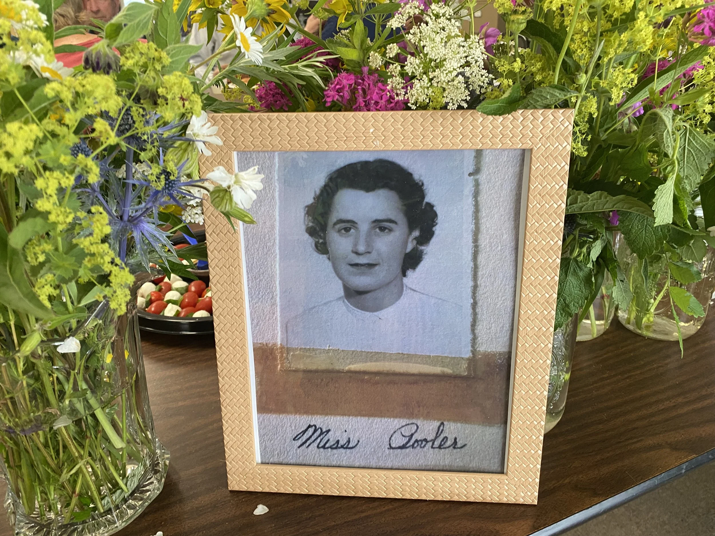 As the former Miss Pooler sat at the head of the lunch table wearing a sapphire blue twin-set and a smile that never quit, John Darling told her, “I was born on a farm and had to milk cows before school so all the kids called me ‘Farmer.’” Gerald Clarrage said, “I’ve done everything in my life that I wanted to, and I still remember liking fourth grade.” Through all the reminiscences, Miss Pooler beamed.