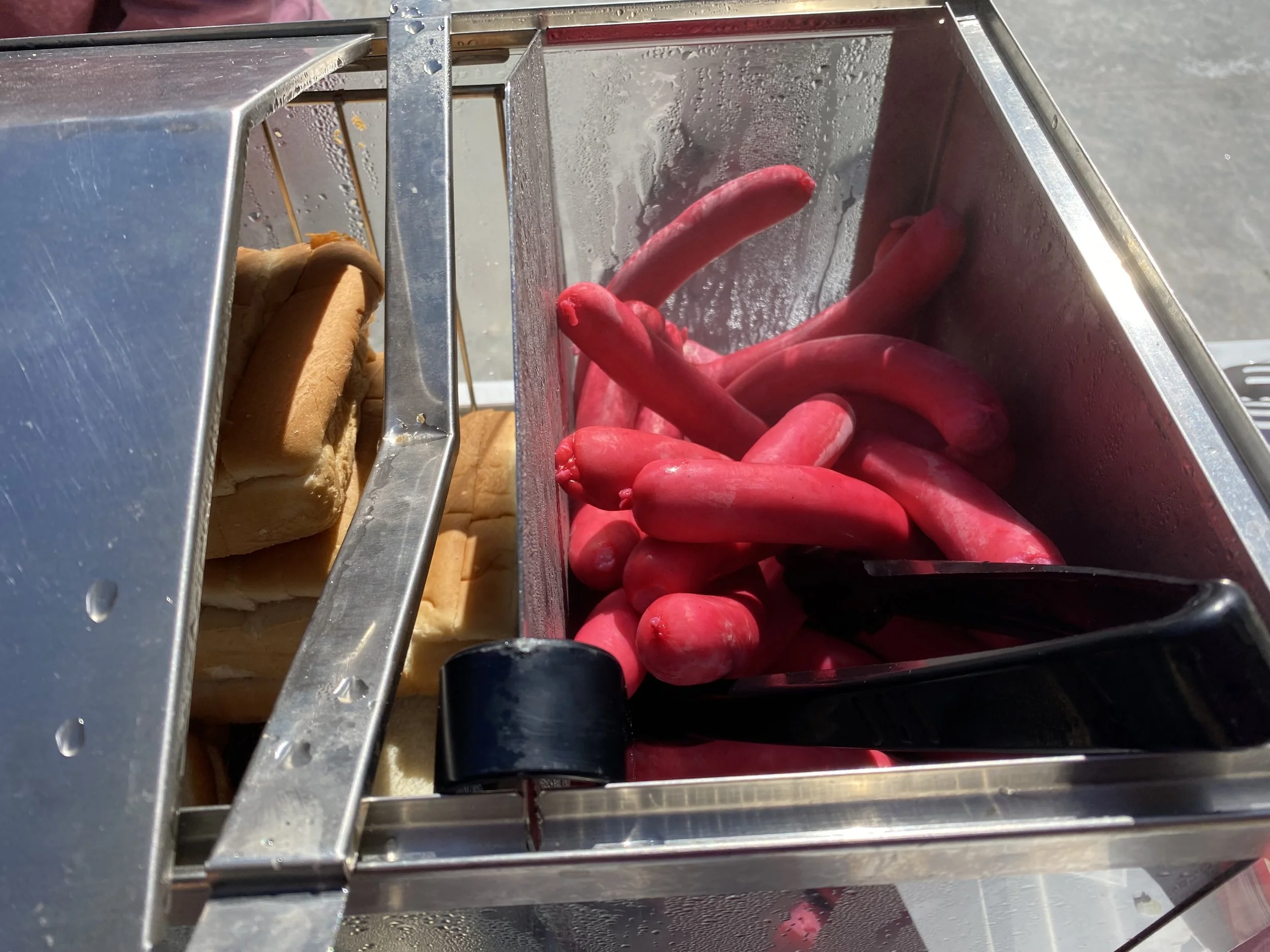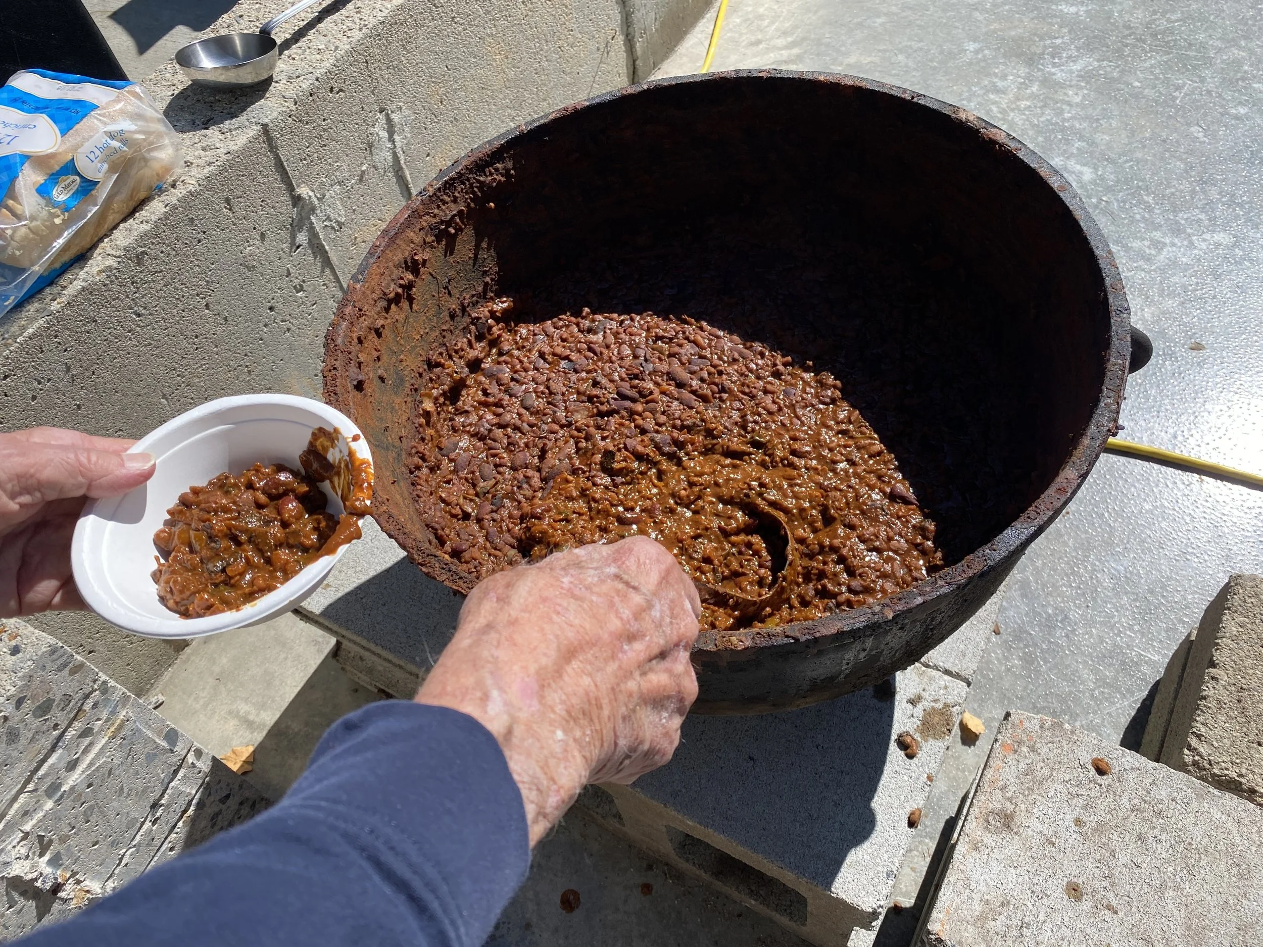 Bob and I helped ourself to a complimentary lunch at a long buffet table featuring baked beans cooked in a cauldron, bright red Maine hotdogs, chips and mini cupcakes. Mike’s wife Stephanie Nadeau kept restocking the cupcakes and candy tray as little kids helped themselves to the goodies.