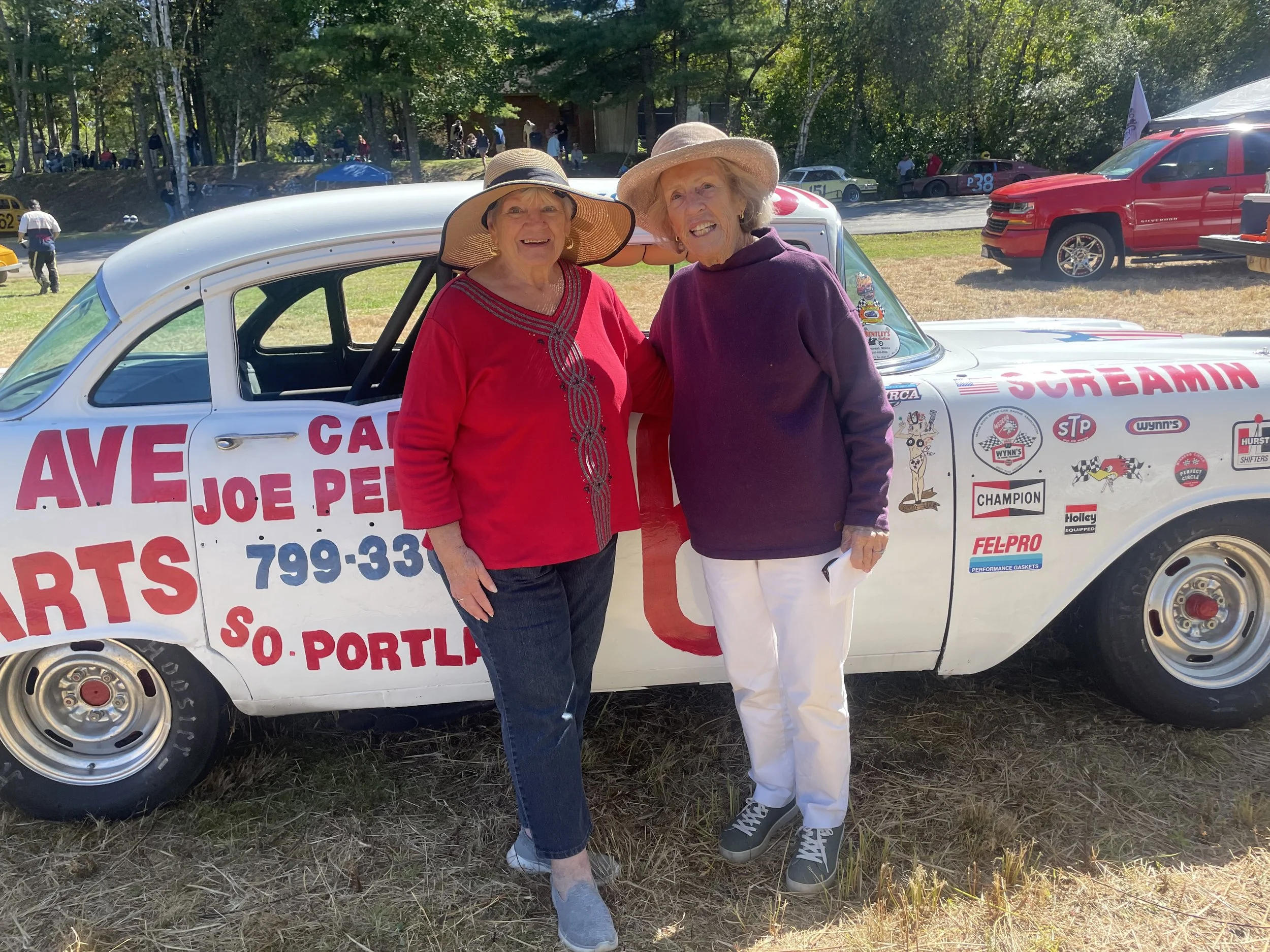 Under Windex-blue skies and with temperatures hovering in the high 60s, we found Mike among a large crowd of Mainers shortly after we arrived. With a twinkle in his eye, Mike asked, “Val, wanna go for a ride on the track?” I gulped and said, “Uh, sure.”