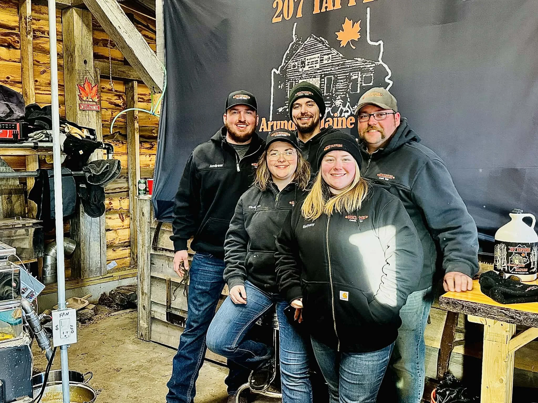 Casey’s team (Tappers 207) is a fun and joyful mixture of family and friends. His wife Elizabeth, a young mother of two with another due in mid-summer, is called “the organizer.” She and her best friend Bethany (expecting twins in the fall!) clean and fill the half-gallon, quart, pint and half-pint bottles, “among other countless tasks,” she says with a smile. Two of Casey’s best buds, Brandon and Andrew, assist in the tapping and boiling process, and keep the wood fire stoked. Listening to the joking and laughter of the group, it’s evident there is no “I” in this team.