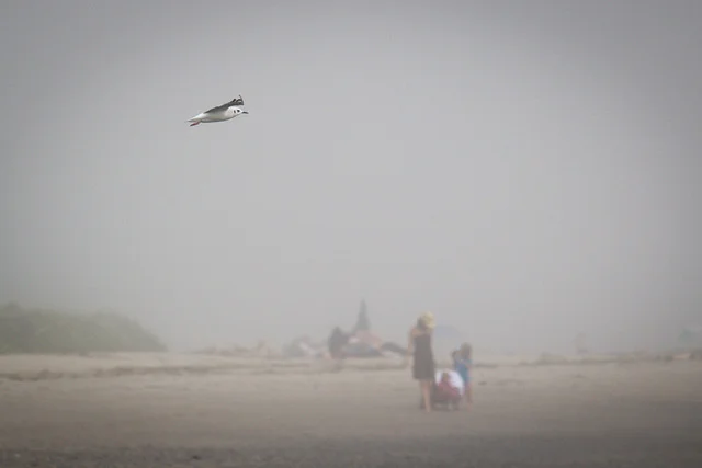 I hear a morning symphony of waves lapping steadily as the tide rolls in, as gulls swoop and caw.